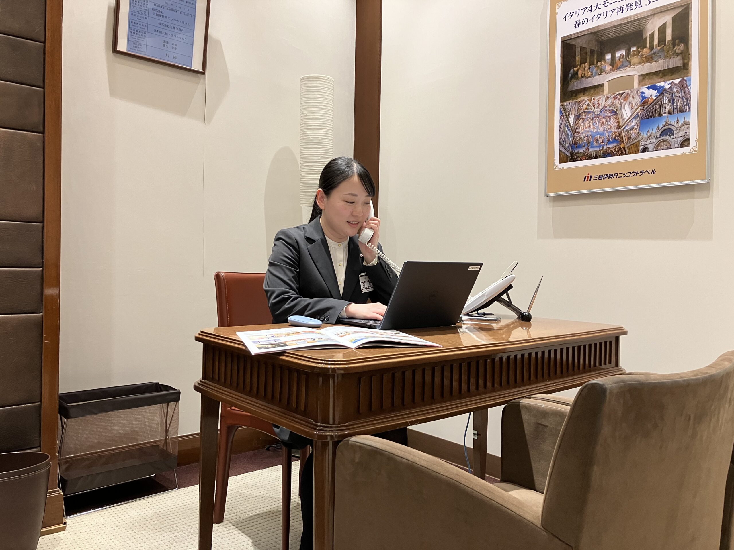 仕事内容は、例えば主催旅行ですと、企画・販売・販促・実施までを自社でおこなっているため、企画からパンフレット作成、販売や添乗まですべての行程に関わることになります。